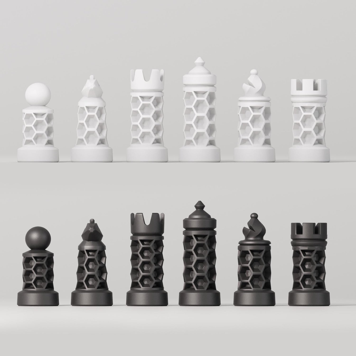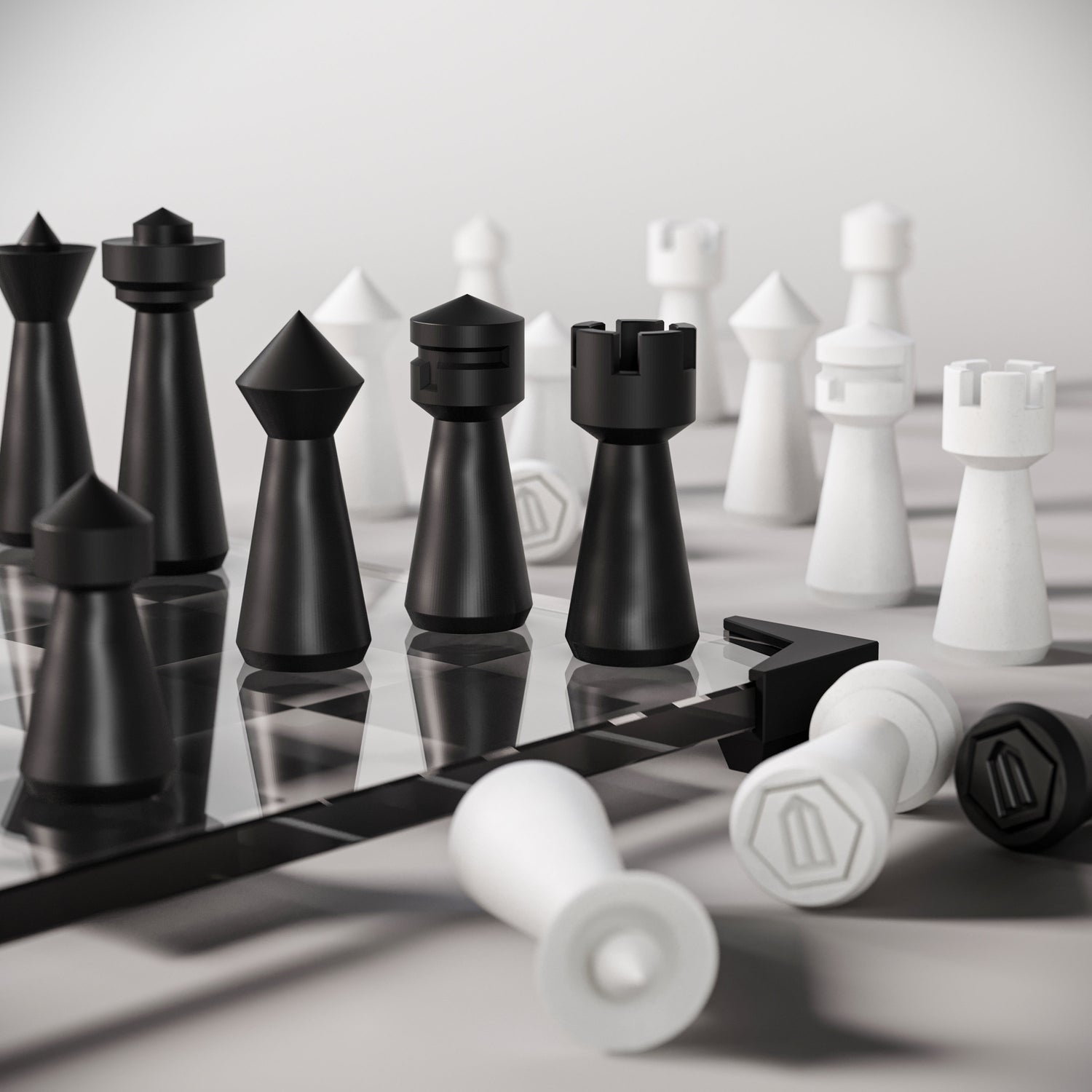 Modern Geometric Glass Chess Set: Weighted PLA Pieces