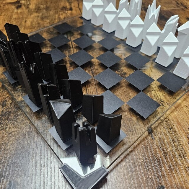 Modern Geometric Glass Chess Set: Weighted PLA Pieces