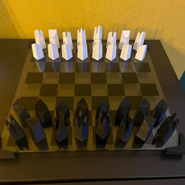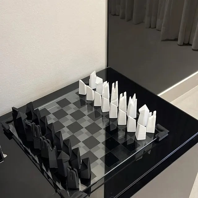 Modern Glass Chess Set: Weighted PLA Pieces, Handmade